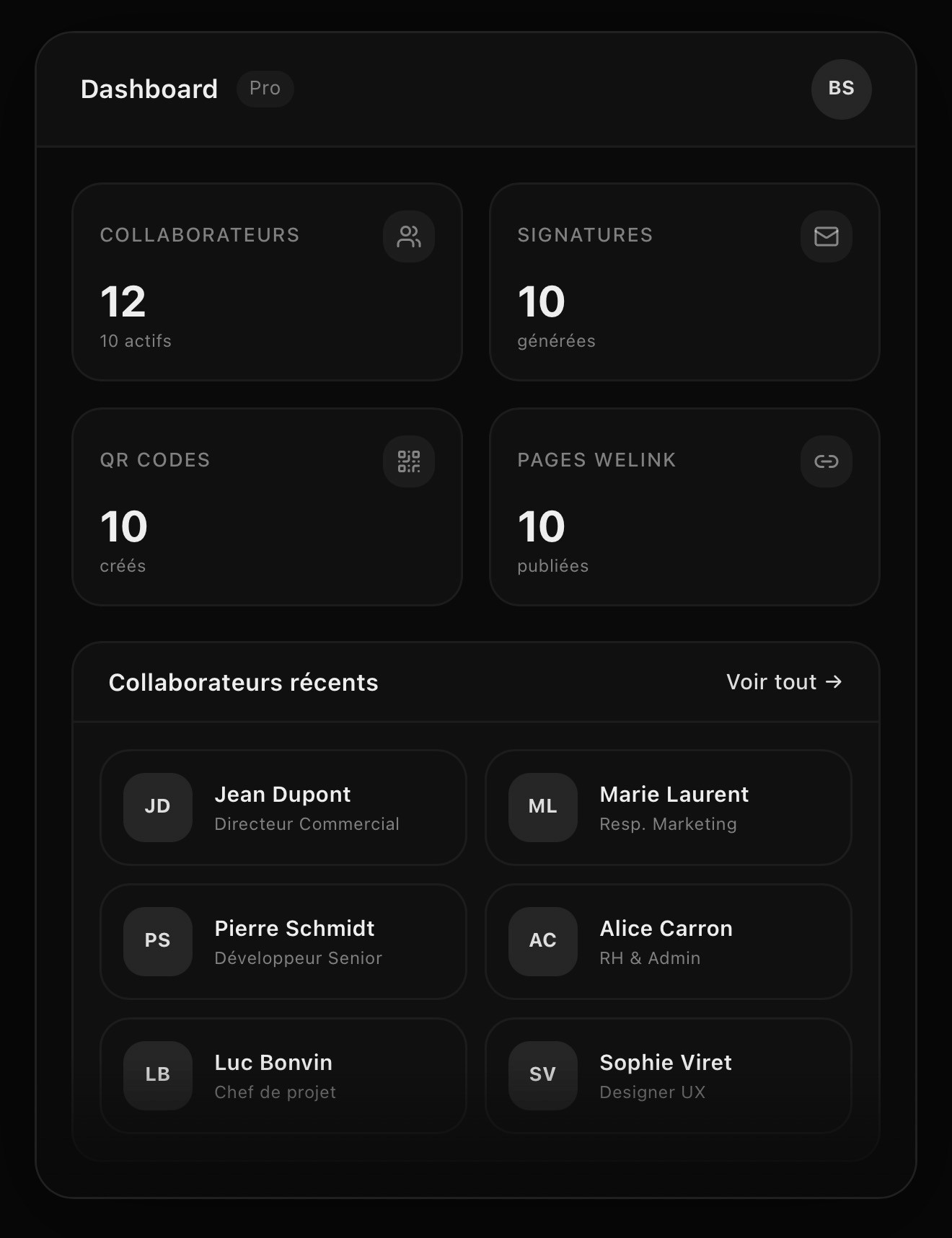 Découvrez en détail toutes les fonctionnalités de WeLink et comment elles transforment l'identité numérique de votre équipe.